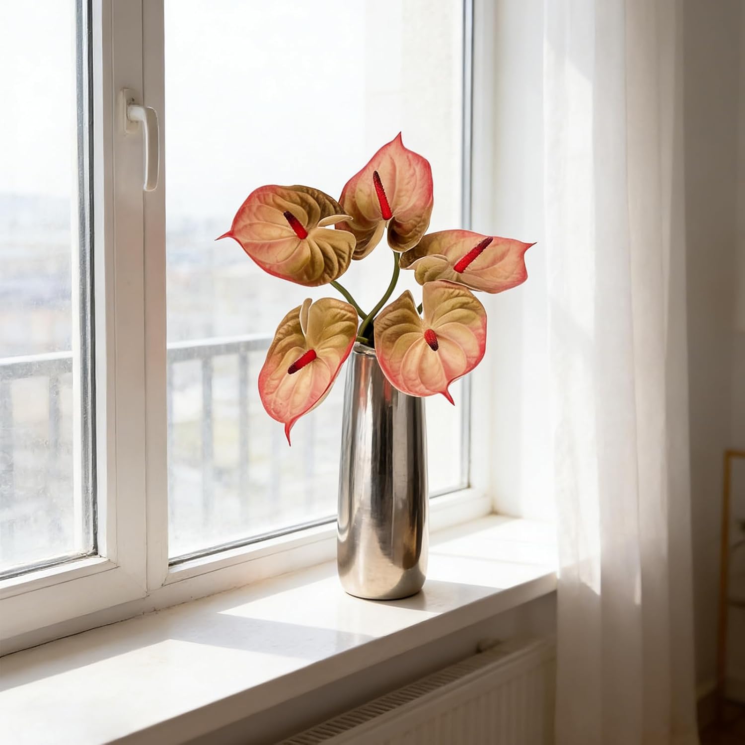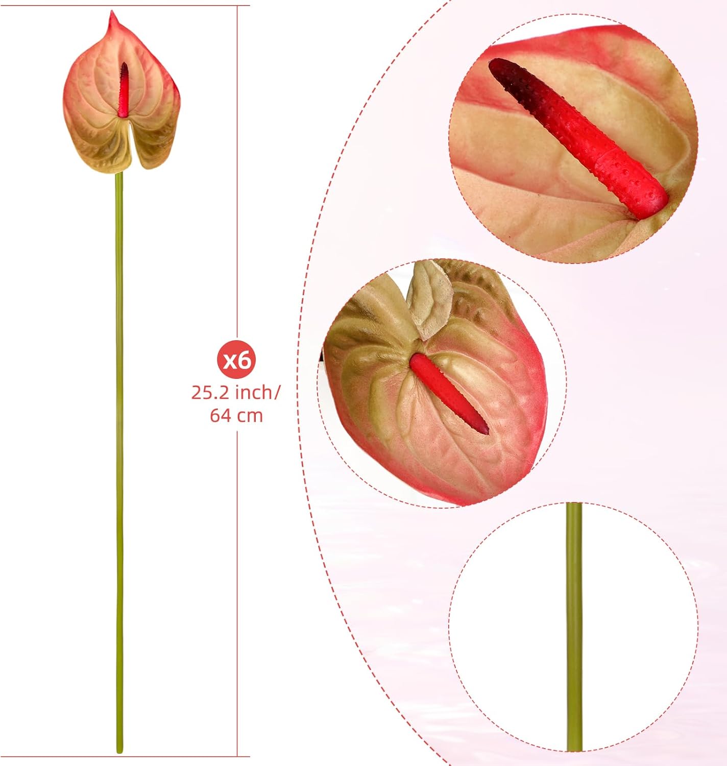 Color: Dusty Pink Material: High quality silk material Size: 25.2 inches /64 cm Package: 8pcs artificial Anthurium Our dusty pink artificial anthurium flower is full and lifelike, and 8 pieces can easily decorate any space, which is very suitable for home decoration or wedding decoration. The leaves of each green faux anthurium flowers have vivid textures and bright colors. The slender branches of green silk anthurium flowers are flexible and firm, and easy to bend and shape to adapt to any arrangement. The stems of dusty pink silk anthurium flowers are very flexible, and can be bent, straightened or cut, so it can be easily shaped to suit the decoration you want. You can put artificial anthurium in a jar, flowerpot or vase as a central decoration, match it with other artificial flowers, cut it for decoration alone, or match it with other different types of artificial green plants. It is an excellent choice for indoor and outdoor decoration, adding a touch of color and charm to the environment you want to decorate for anyone. Our faux anthurium is a beautiful ornament, so that you can enjoy their beauty effortlessly in the next few years. 1. Perfect flower arrangement, central decoration, wedding bouquet, bride, party and home decoration. Very suitable for wedding decoration or home decoration. 2. These artificial anthurium will bend slightly during transportation, and you can easily restore it to its original state after manual adjustment. 3. handmade, after receiving the bouquet, break the branches straight by hand and blow them with a hair dryer for a few minutes, and they will return to normal.