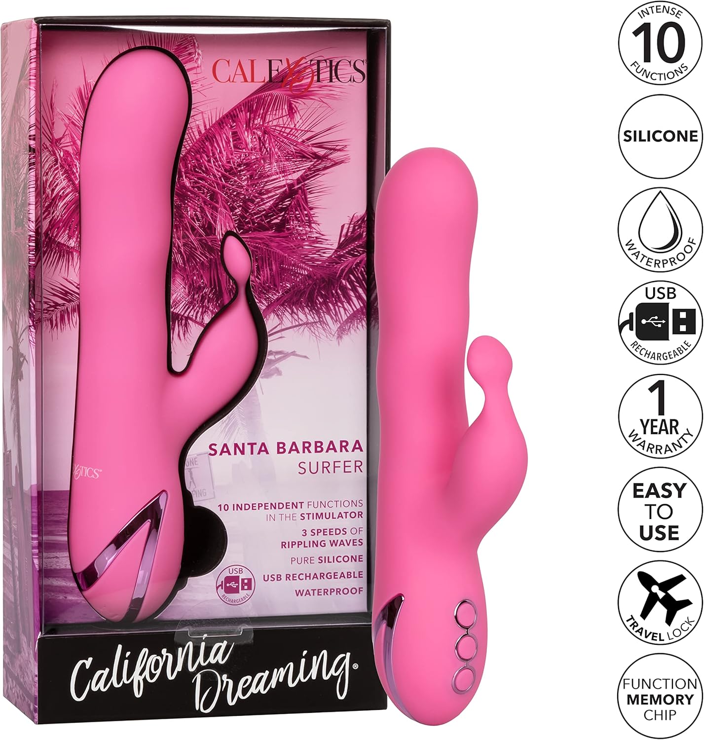 10 functions of independent vibration, pulsation and escalation in the stimulator. Powerful massager with rippling waves plus flickering teaser