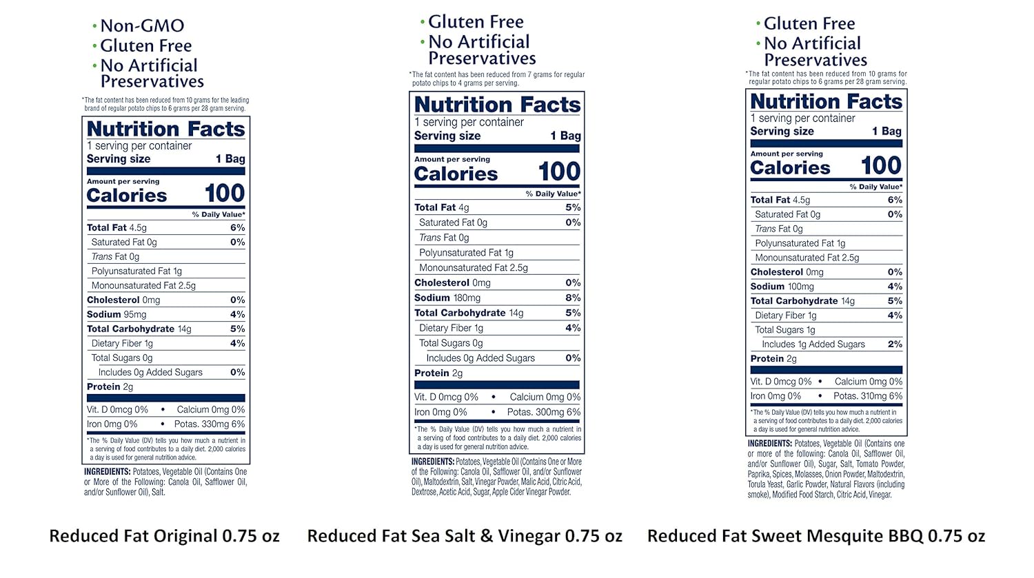• FAVORITE FLAVORS: Includes Less Fat Original, Sea Salt & Vinegar, Sweet Mesquite Barbeque flavors
