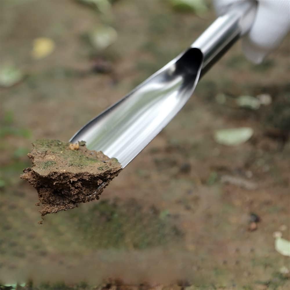 [Size] - 35mm*5mm (13.8inch*2inch), weight : 124g (4.4OZ)[Unique design] - The V-shaped shovel head also ensures that it can easily damage the soil, making weeding and transplanting easier.[Lifetime Durability] – Crafted from stainless steel, the Potting Trowel is the perfect long-lasting addition to your garden tools.[Multi-Use] – This trowel is designed with various uses. Easily break up roots with the sharp point for potting digging transplanting planting and weeding. You can move soil quickly and efficiently with this durable and lightweight tool.[Customer Service]: If you need any advice or product support, please contact our excellent customer service team who will happily respond to your question within 24 hours.