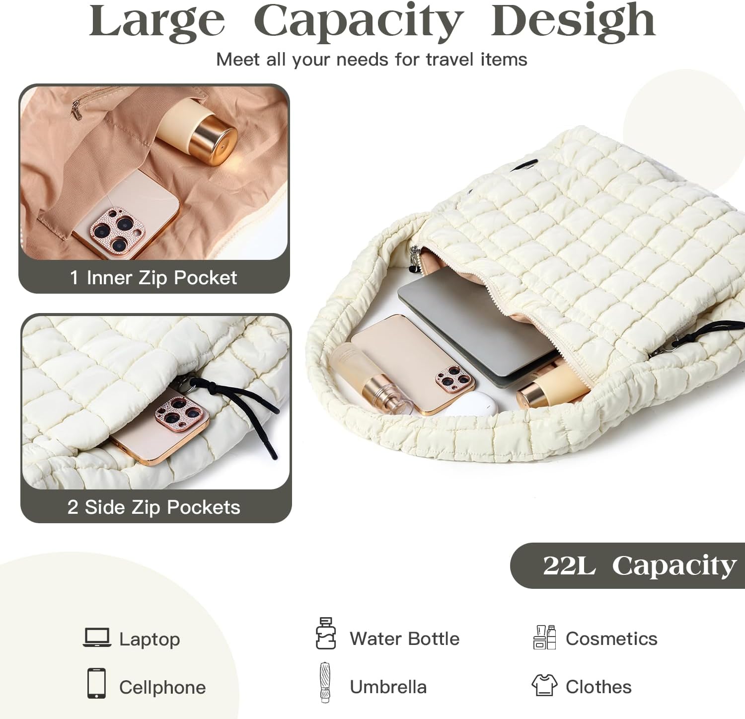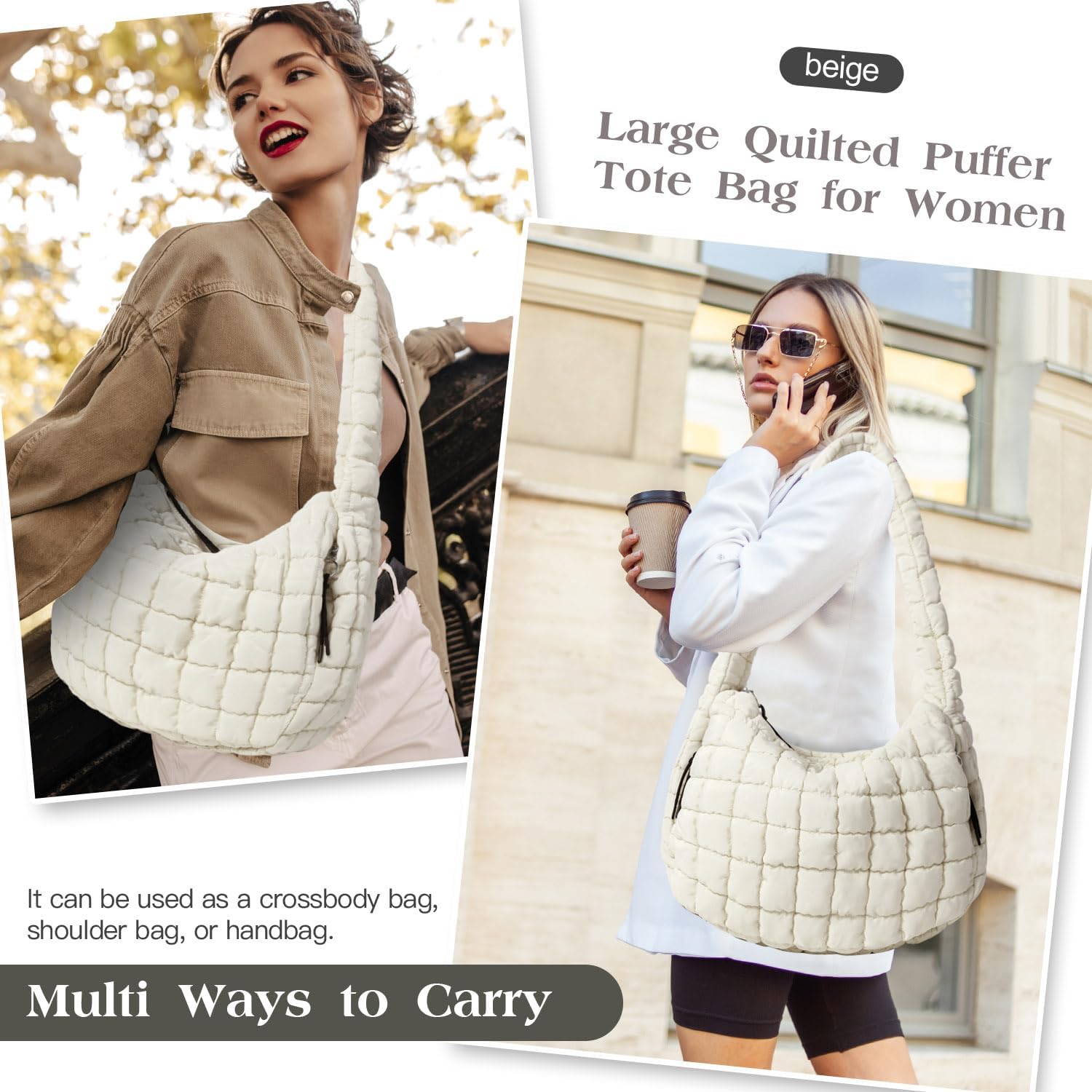 This puffer tote bag offers ample room for your phone, wallet, iPad, umbrella, makeup, clothes, and other daily essentials, allowing you to keep your hands free and travel more conveniently!